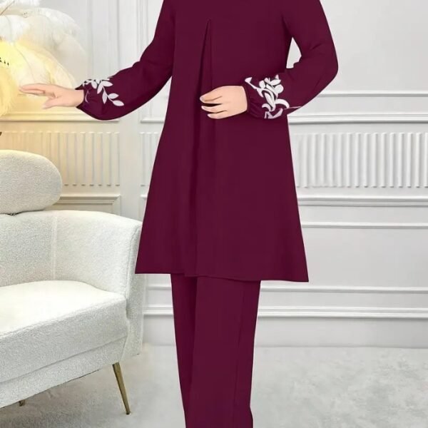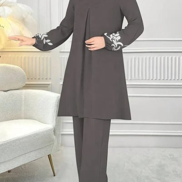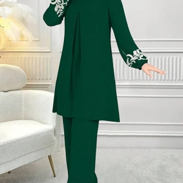 Women’s Elegant Floral Print Two-Piece Set – Chic Casual Suit with Printed Top and Solid Color Pants, Perfect for Daily Wear or Semi-Formal Occasions