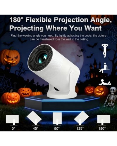 XYA Ultra-HD Smart Mini Projector – 180° Rotatable Portable Home Theater with WiFi 6 & Bluetooth 5.2, Android 12 System, Auto Keystone Correction & Quick Focus – Ultra Bright Projector for PC, TV, Smartphone & Office Presentations