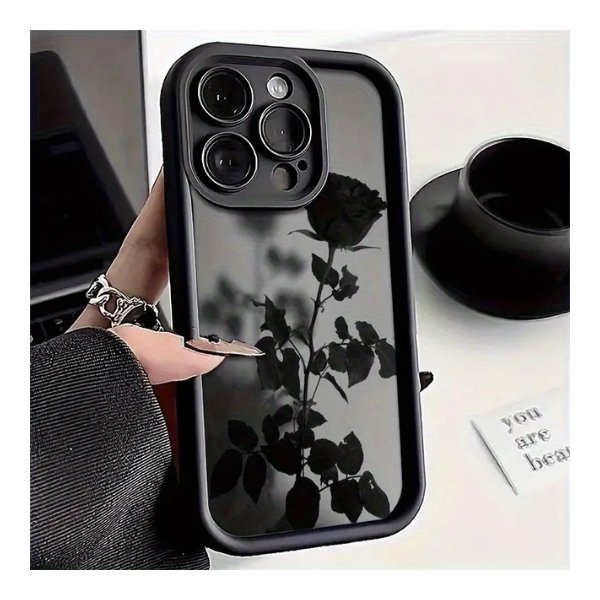 High Bamboo Black Shell Rose Pattern iPhone Case – Slim Protective Cover for iPhone 6 to 16 Pro Max Series | Elegant Floral Design