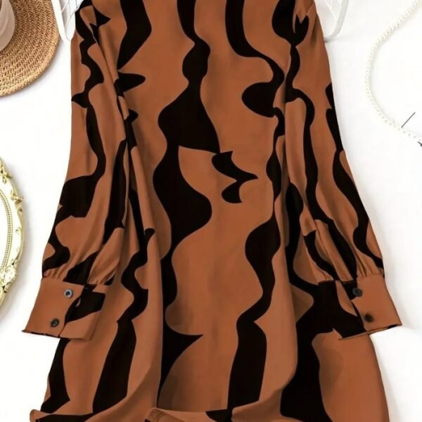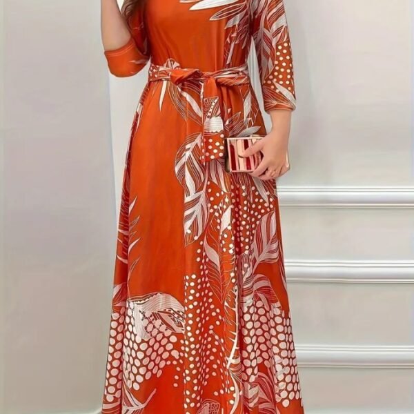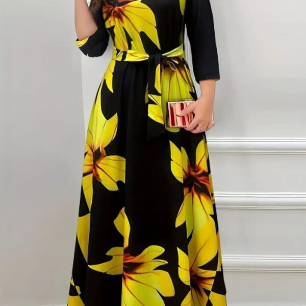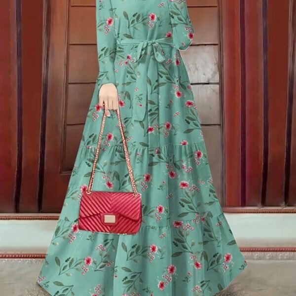 Women’s Floral A-Line Dress – Adjustable Waist Tie, Long Sleeves & Round Neck | Soft, Stretchy Fabric for All-Season Casual & Formal Wear