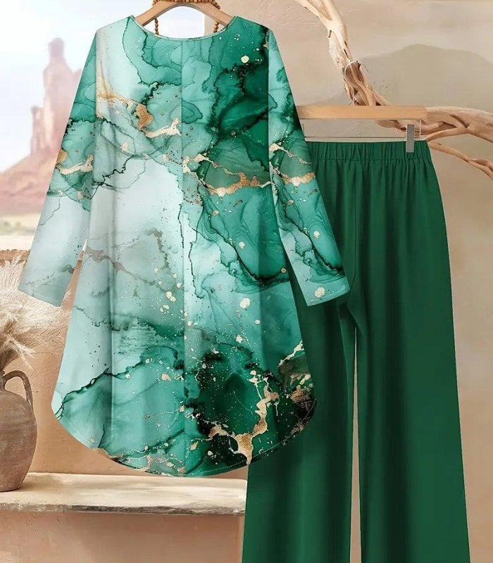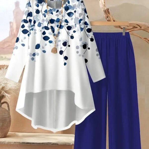 Women’s Floral Two-Piece Set – Elegant Long Sleeve Top & Matching Pants | Casual, Comfortable & Stylish Vacation Outfit