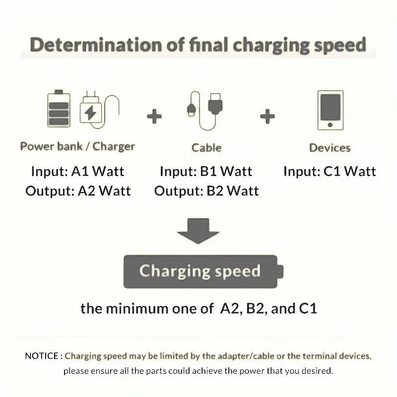 The 100W 3-in-1 Fast Charging Cable supports Power Delivery (PD) and Quick Charge (QC 4.0/3.0) protocols, providing full-speed charging for compatible devices. The thick copper core ensures fast data transfer and stable output while protecting your devices from overcharging and overheating.