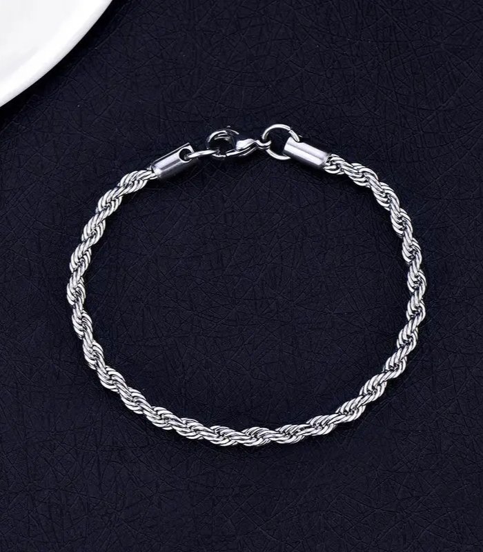 Add a touch of elegance and strength to your style with the 4mm Stainless Steel Rope Chain Bracelet, a perfect blend of durability, shine, and sophistication. This bracelet is crafted from premium-grade stainless steel with a beautiful twist rope chain design, making it both timeless and modern.