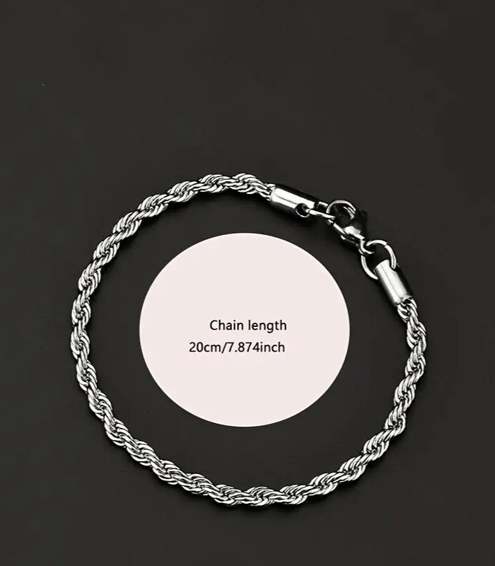 Elevate your look with this 4mm Stainless Steel Twist Rope Chain Bracelet, crafted for both men and women. Durable, rust-free, and designed to shine — perfect for daily wear or special occasions.