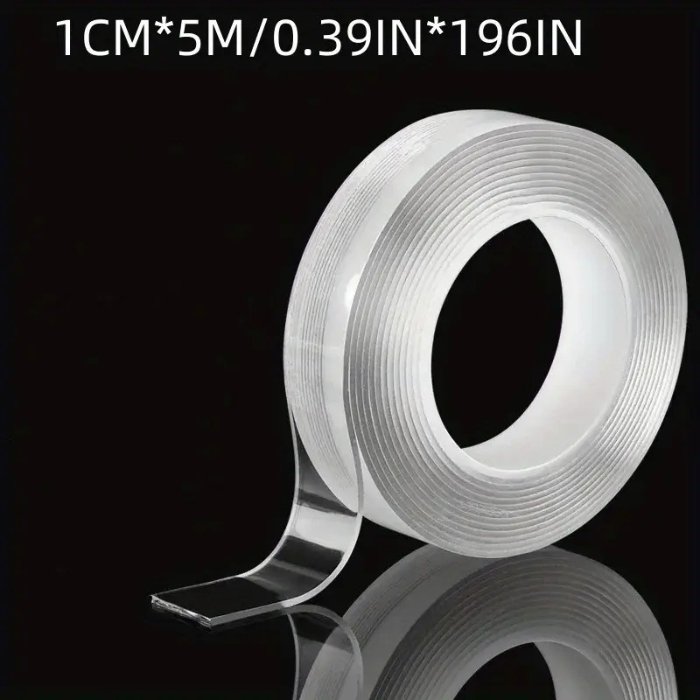 Made from premium nano gel material, this tape sticks firmly to smooth surfaces like glass, marble, tile, metal, wood, and plastic — without leaving any residue when removed. Its transparent design keeps your setup neat and clean, blending seamlessly with any home or office decor. The tape is also heat-resistant and waterproof, making it ideal for kitchens, bathrooms, and even outdoor applications.