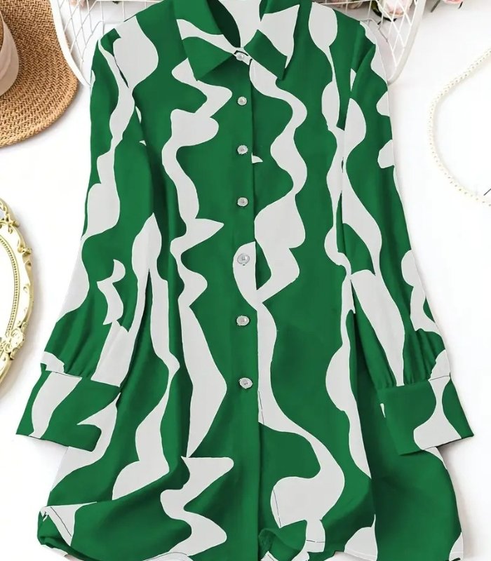 The long sleeves and classic shirt collar give it a refined touch, while the button-up front allows easy wear and styling. Its delicate floral print brings a feminine and refreshing look, ideal for spring and autumn seasons.