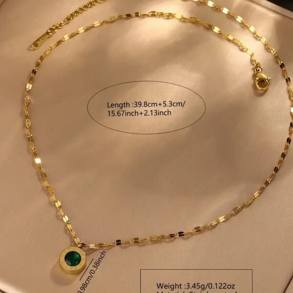 “Vintage 18K Gold-Plated Necklace – Roman Numeral Pendant with Blue Rhinestone, Stainless Steel Elegance”