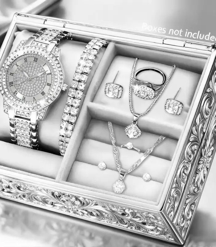 The Elegant Quartz Watch & Jewelry Set for Women is a stunning accessory pack designed to elevate your everyday and special occasion style. Featuring a minimalist round quartz watch paired with ten carefully crafted jewelry pieces, this combination reflects both elegance and practicality. Whether for business attire or casual wear, it is the perfect choice for women who value timeless beauty.