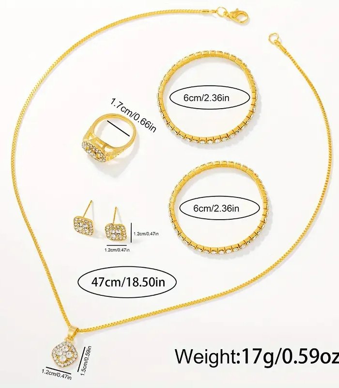 “5-Piece Vintage Jewelry Set 18k gold – Elegant Zinc Alloy with Synthetic Zirconia, Perfect Gift for Any Occasion”