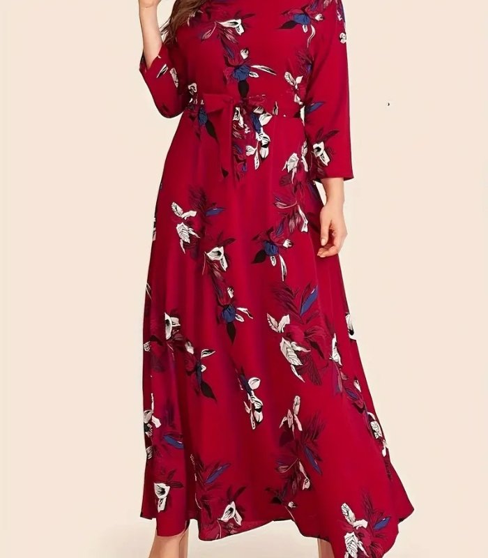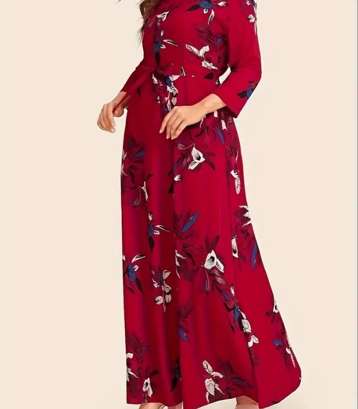 This maxi frock features a round neckline and long sleeves, creating a classic and modest style. The A-line silhouette flatters every body shape, offering a soft, flowing fit that enhances your natural beauty. It’s comfortable to wear all day and perfect for every season.