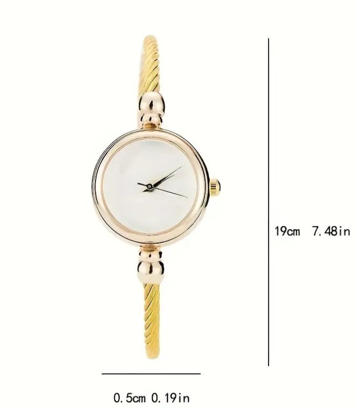 Experience elegance and sophistication with our Elegant Women’s Quartz Bracelet Watch, crafted to redefine timeless beauty. This watch features a premium quartz movement that ensures accurate timekeeping while offering a refined touch to any outfit. Its golden-tone alloy bangle is delicately designed to fit comfortably on the wrist, giving a luxurious jewelry-like appeal that elevates your overall look.