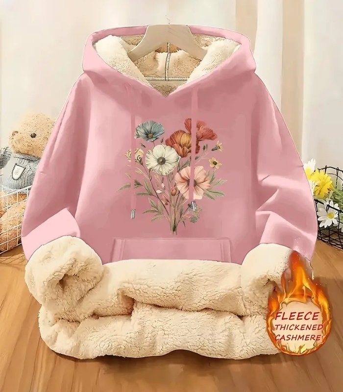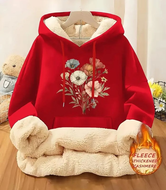 Women’s Floral Fleece Hoodie – Retro-Inspired Cozy Sweatshirt with Soft Lining | Warm Casual Pullover for Fall & Winter