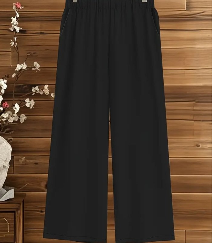 Women’s Elegant Embroidered Two-Piece Set – Loose Long Sleeve Stand Collar Shirt with Wide-Leg Straight Pants