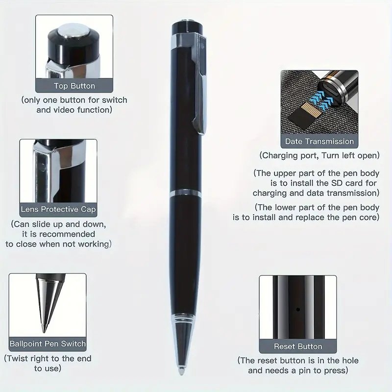 Compact, portable, and easy to carry, this pen camera fits effortlessly in your pocket or notebook. Whether used for note-taking or discreet recording, it delivers reliability and convenience in one elegant design. Upgrade your daily routine with this professional-grade recording pen and experience hassle-free documentation like never before.