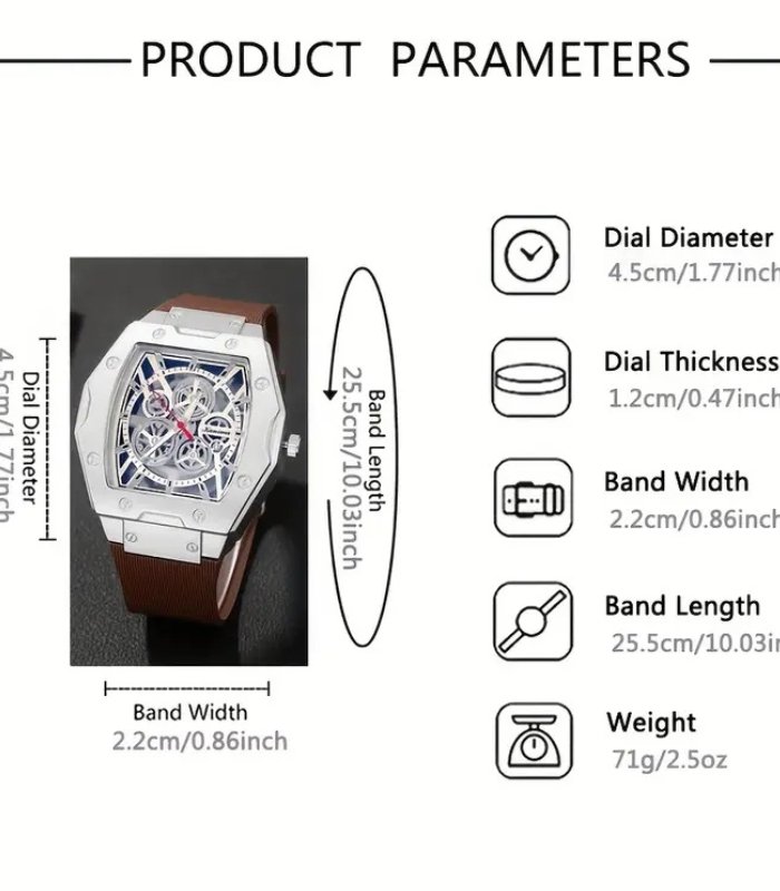 Elevate your daily style with this Men’s Casual Quartz Watch featuring a bold square dial and a comfortable silicone strap. Perfect for work, casual wear, or outings, it combines durability, precision, and modern aesthetics in one sleek design.
