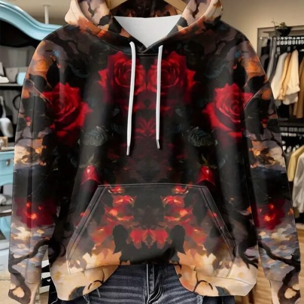 Women’s Dark Floral Hoodie – Soft Pullover Sweatshirt with Elegant Rose Print | Cozy & Stylish Casual Top for Fall and Winter