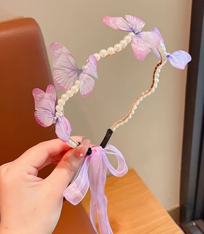 This elegant Princess Butterfly Hairband features imitation pearls and a soft forest-style butterfly design. Perfect for birthdays, parties, school functions, photoshoots, and daily dress-up play.