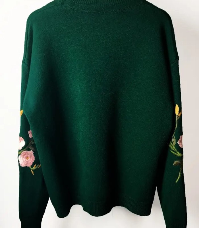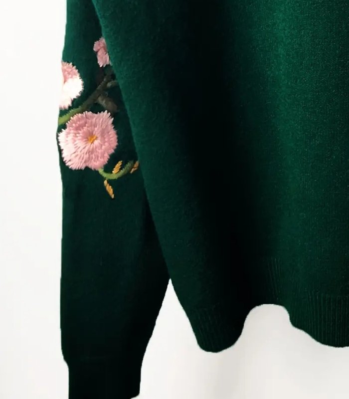 Tags: Embroidered Pullover, Floral Sweater, Green Sweater for Women