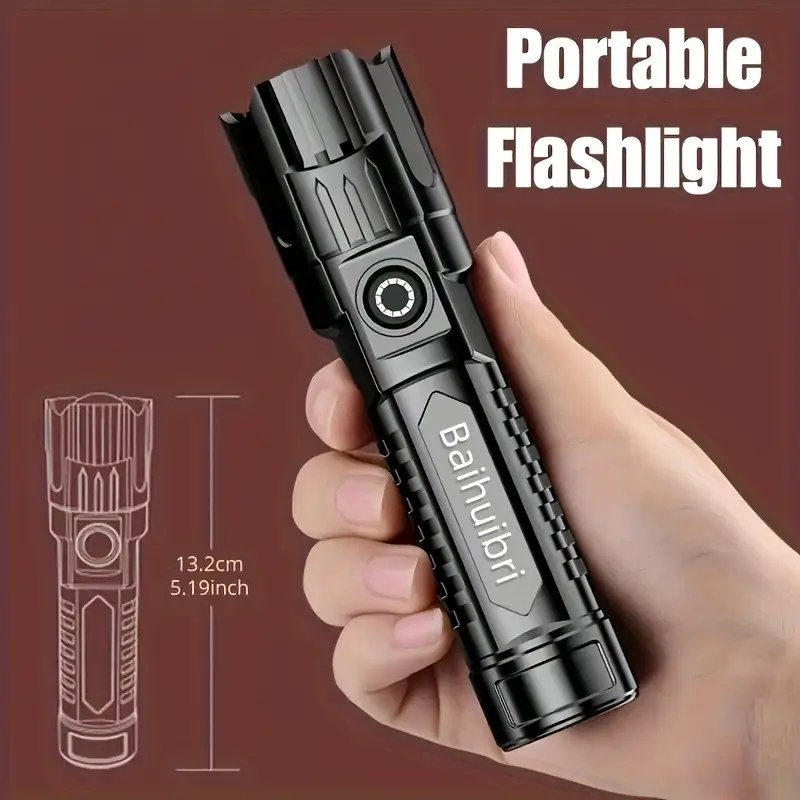 Baihuibri Super Bright LED Flashlight – 800mAh Rechargeable, Telescopic Zoom, 150 Lumens, 200M Range