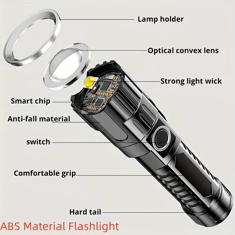 Designed with telescopic zoom, you can easily switch between wide-angle flood lighting and focused long-distance spotlighting. Its durable construction ensures shock resistance and water resistance, making it ideal for camping, hiking, electricity outages, and roadside emergencies.