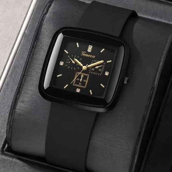 Trendy Quartz Square Watch – Silicone Band, Plastic Case, Battery-Operated with Electronic Drive | Everyday Fashion Watch | Long-Lasting & Comfortable Design
