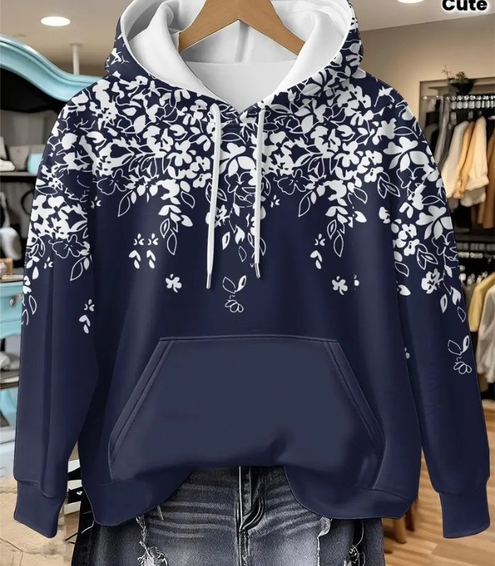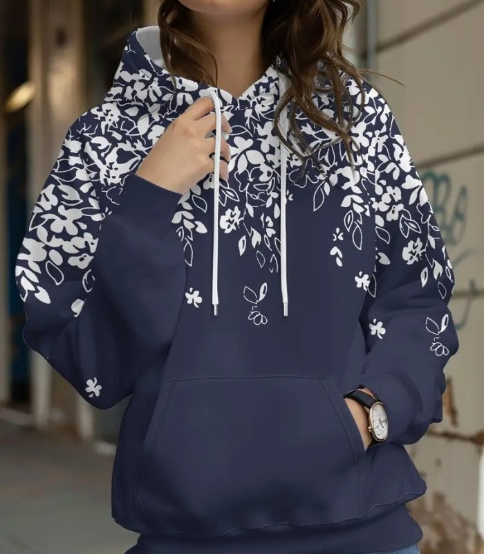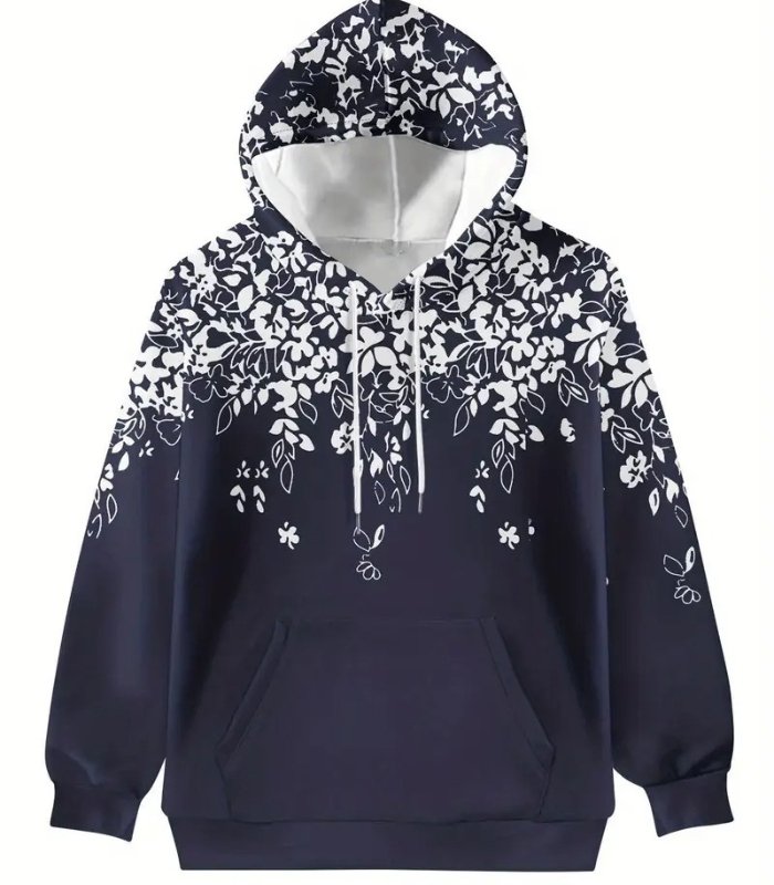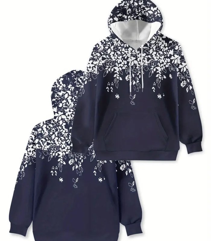 Women’s Floral Pattern Hoodie – Stylish Long-Sleeve Pullover with Drawstring Hood & Front Pockets | Soft, Casual & Machine-Washable Sweatshirt for Spring and Fall