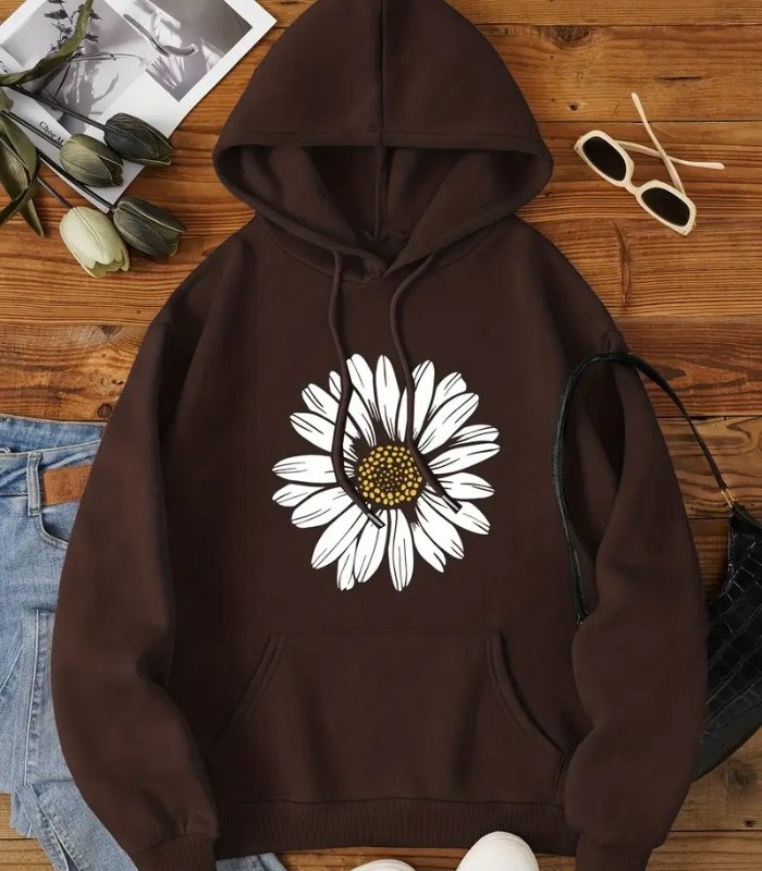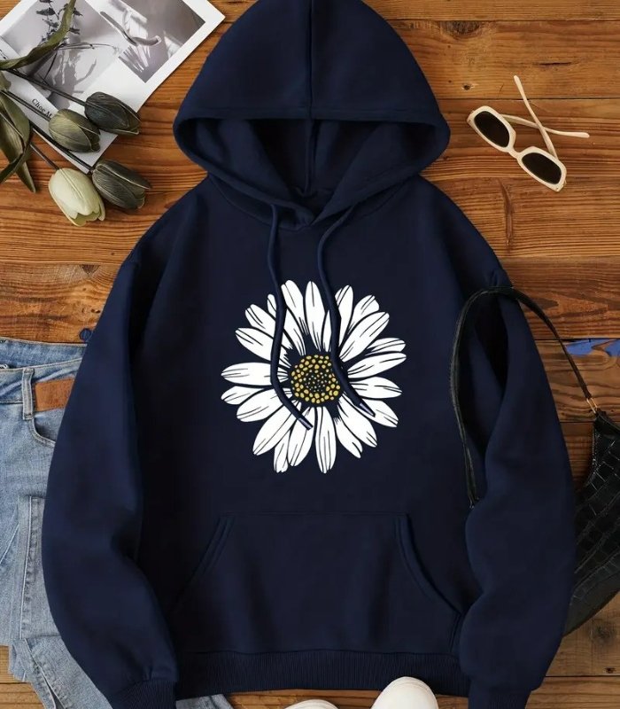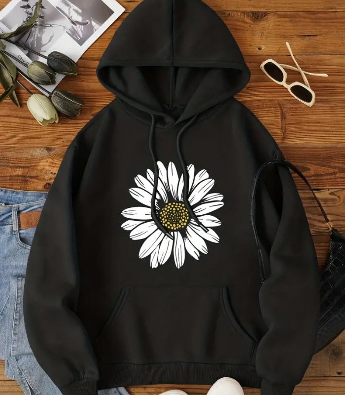 Tags: cozy floral hoodie, cute daisy sweatshirt, daisy hoodie for women