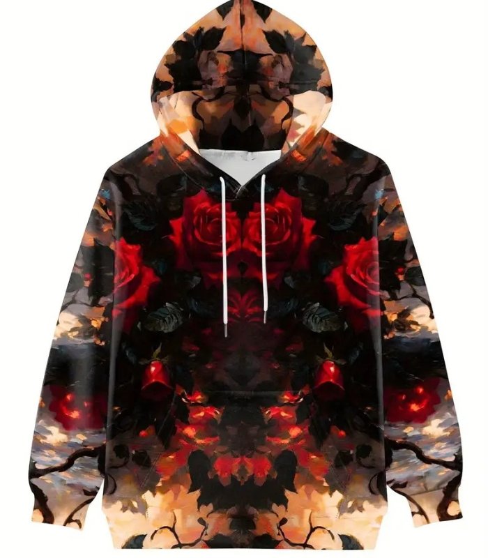 Elevate your casual style with this Women’s Dark Floral Hoodie, designed for comfort, elegance, and warmth. The floral print hoodie for women showcases a stunning rose design sweatshirt that brings a timeless charm to your wardrobe.