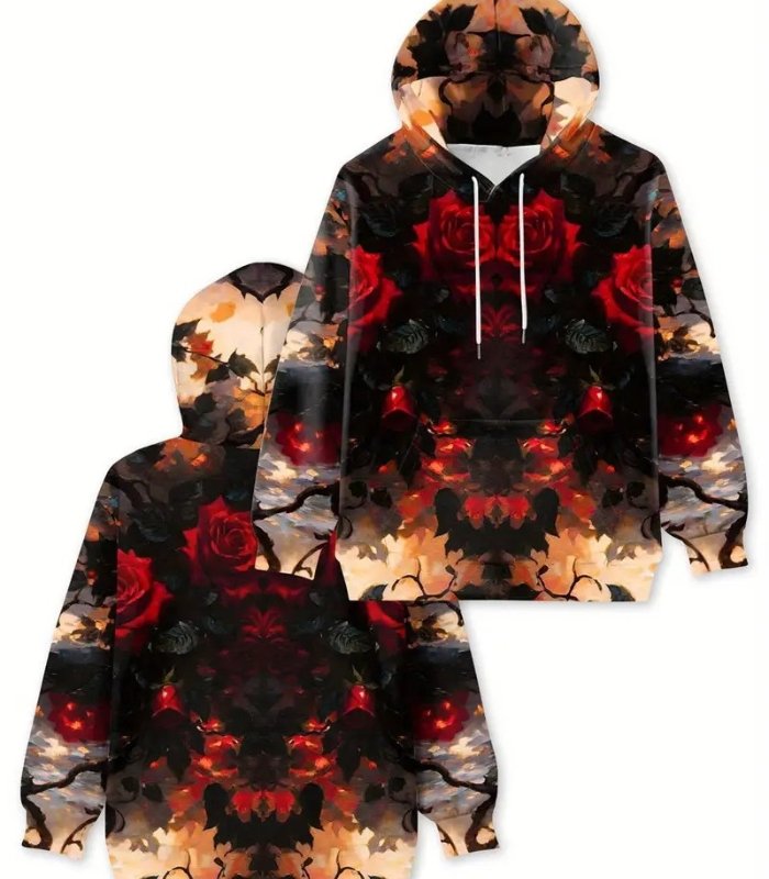 Stay warm and stylish in this bold Women’s Dark Floral Hoodie featuring an elegant rose design sweatshirt. Made from soft and cozy fabric, it’s perfect for fall and winter. The casual hooded sweatshirt style gives it a relaxed vibe, making it ideal for everyday wear.