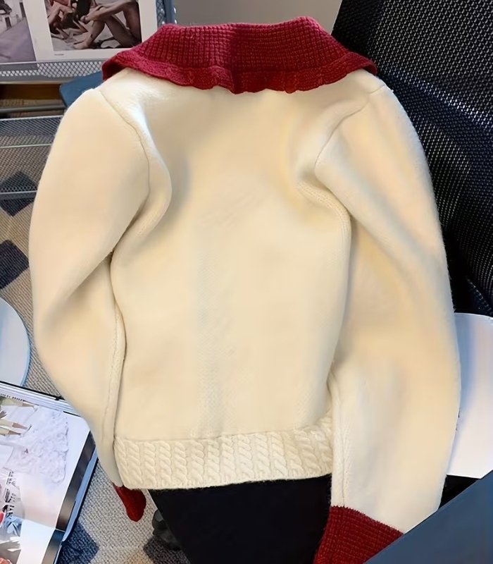 Upgrade your winter wardrobe with the Women’s Soft Knit Red Contrast Collar Cardigan, designed for both style and comfort. Crafted from soft, high-quality knit fabric, this cardigan keeps you warm while maintaining a lightweight feel.