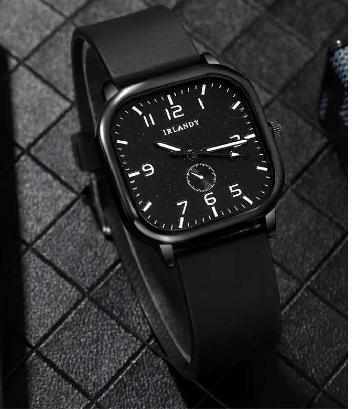 Men’s Casual Quartz Watch with Square Dial & Silicone Strap – Stylish Everyday Timepiece