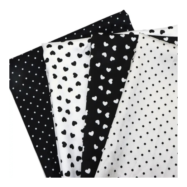 Buyvuy 9pcs Black Floral & Polka Dot Fabric Bundle – 100% Cotton Fat Quarters for Sewing, Quilting & DIY Crafts (50x50cm)