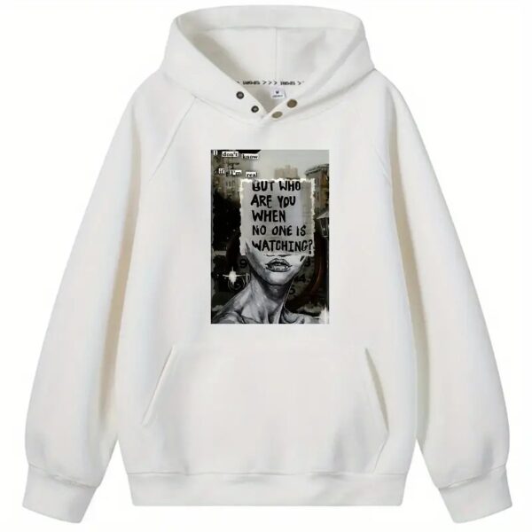 I Don’t Know Who I Am” Quirky Urban Street Art Print Hoodie – White PVC Casual Wear | Unisex Fashion Statement Hoodie