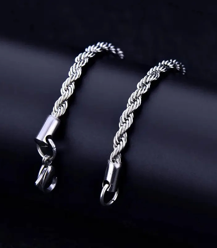 Add a touch of elegance and strength to your style with the 4mm Stainless Steel Rope Chain Bracelet, a perfect blend of durability, shine, and sophistication. This bracelet is crafted from premium-grade stainless steel with a beautiful twist rope chain design, making it both timeless and modern.
