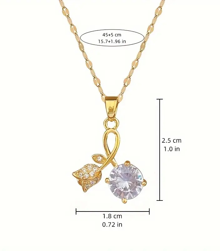 “Elegant Titanium 18k gold plated Steel Necklace – Rose & Cherry Blossom Pendant with Synthetic Zirconia, 18K Gold Plated Jewelry Gift”