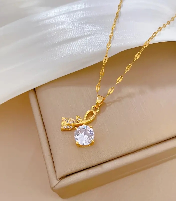 This necklace is further enhanced with synthetic zirconia stones that provide a sparkling finish. Therefore, it makes the perfect accessory for formal events, dinners, or even casual outings where you want to add a touch of class. Furthermore, the lightweight yet durable steel chain ensures all-day comfort.