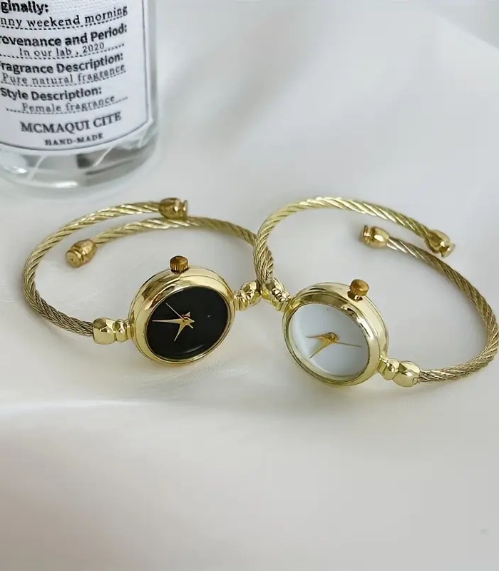 Elegant Women’s Quartz Bracelet Watch – Golden-Tone Alloy Bangle with Black Dial, Chic Jewelry Gift