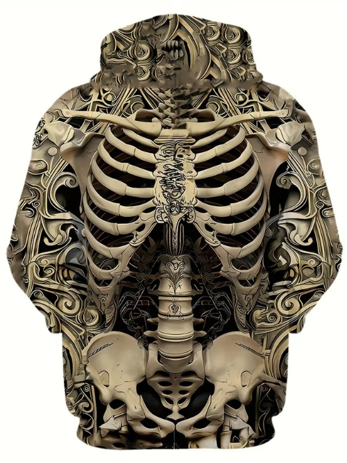 Men’s 3D Skeleton Print Hoodie – Stylish Long-Sleeve Casual Sweatshirt with Drawstring Pockets for Spring & Autumn