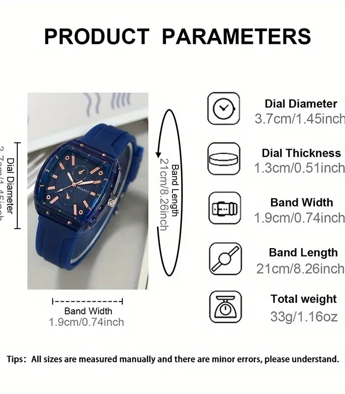 The Men’s Luxury Quartz Watch combines elegance with functionality, making it a must-have accessory for men who value both style and precision. Designed with a bold square blue dial and golden hands, this timepiece is perfect for formal occasions, casual outings, or everyday wear.
