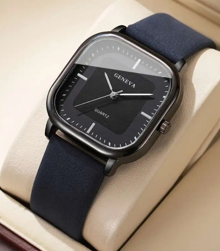 A modern men’s square quartz watch with a minimalist dial, designed for sleek style and everyday comfort. Perfect for casual, business, or daily wear.