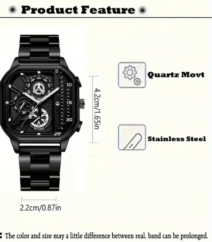 Unlike ordinary wristwatches, this men’s square dial watch is designed to reflect confidence and sophistication. The stainless steel strap adds durability while giving it a polished, premium look. Its simple yet striking dial makes it ideal for professionals as well as those who want a stylish everyday accessory.