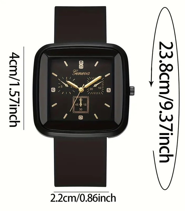 Add a touch of modern style to your look with this Trendy Quartz Square Watch. Featuring a lightweight plastic case, durable silicone strap, and reliable quartz movement, it’s designed for comfort and everyday wear.