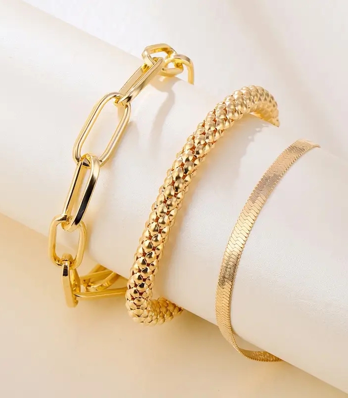 Each bracelet in this combo is crafted with a high-quality zinc alloy and polished with KC golden plating. Therefore, you can wear it without worrying about quick fading. Furthermore, its snake bone chain style makes it stand out from ordinary bracelets, giving you a fashionable and elegant look.