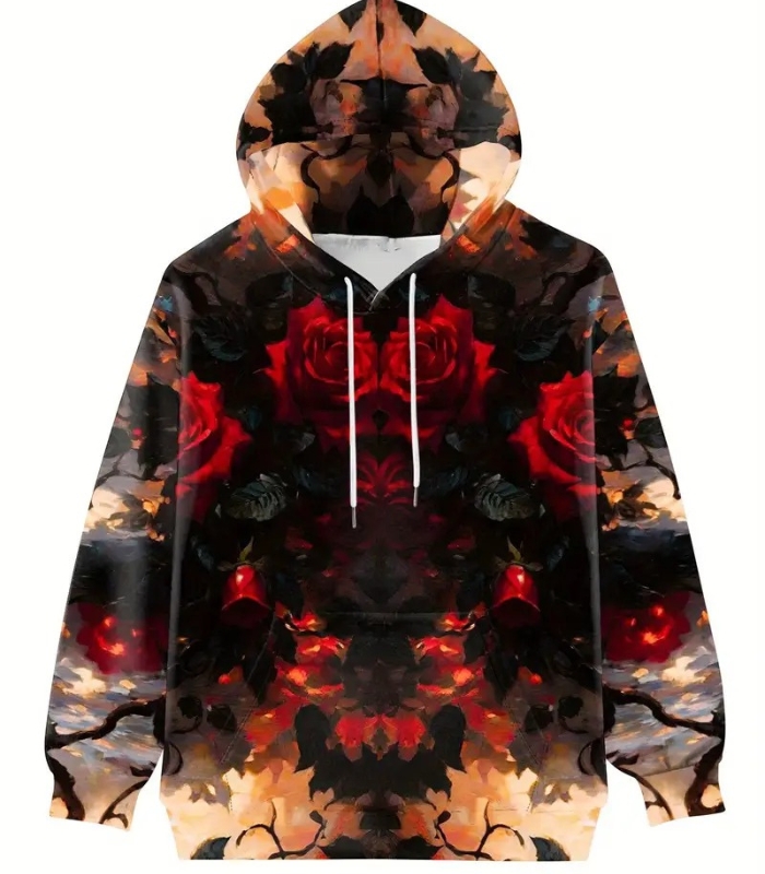 Tags: Casual hooded sweatshirt, Rose design sweatshirt, Winter floral hoodie
