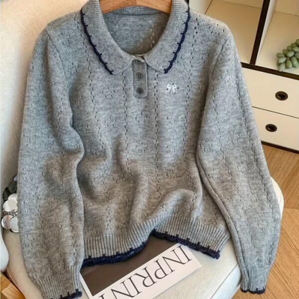 Ideal for autumn and winter layering, this sweater is not only stylish but also practical. The bow accent and lapel detail elevate a simple pullover into a statement piece that enhances your overall outfit. Whether you are heading to the office, meeting friends, or enjoying a weekend brunch, this Korean-Inspired Colorblock Sweater adapts to multiple occasions and keeps you looking elegant and fashionable.