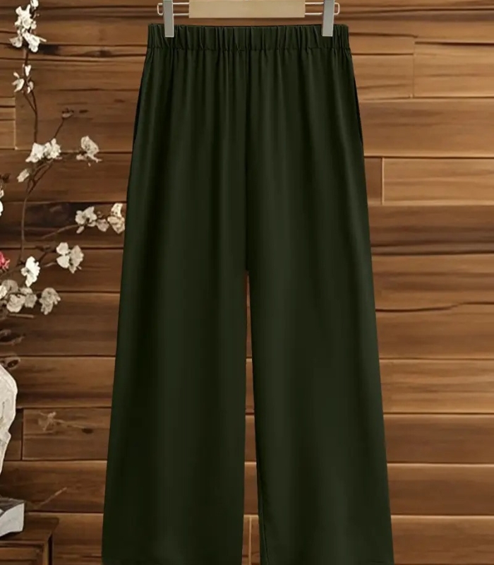 The blouse’s soft plant print brings a fresh and feminine vibe, while the trousers offer a sleek and comfortable fit. Made from lightweight, breathable fabric, this two-piece set keeps you comfortable throughout the day — perfect for spring and autumn weather.